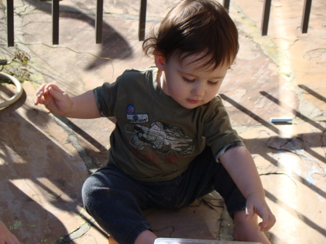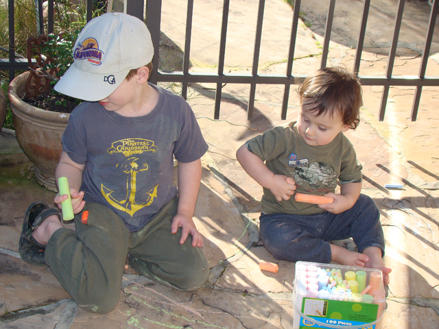 Ryder & Hunter playing outside.