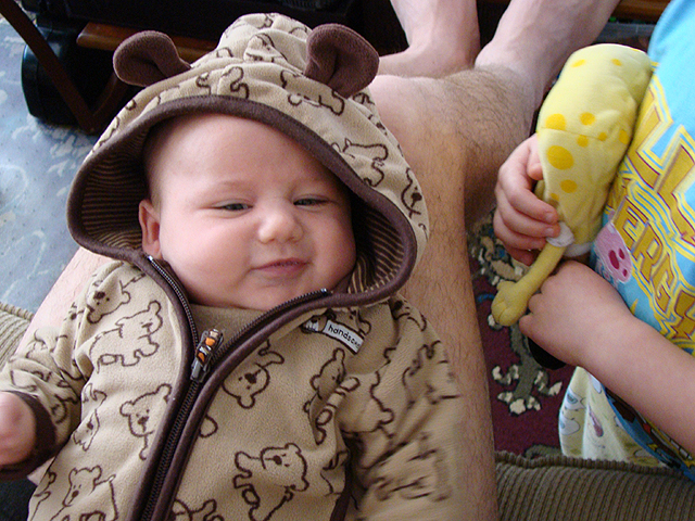 Ryder wearing his cute bear jacket from Natalie.