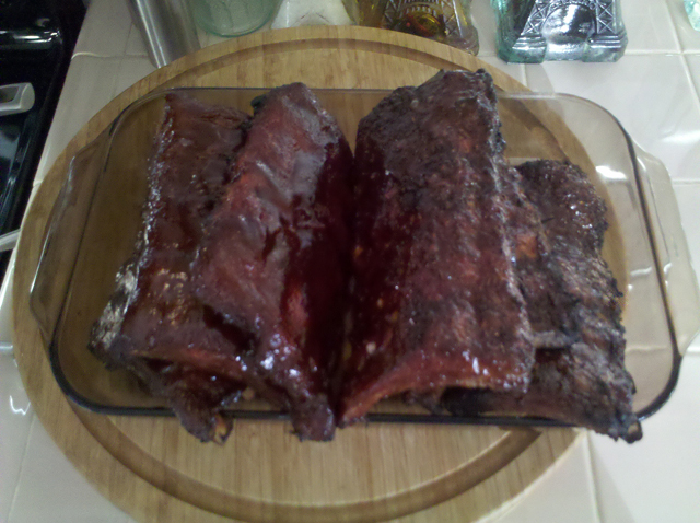Almost ready for the BBQ after about 4 hours on the smoker.