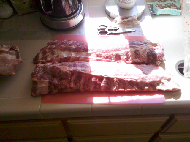 Preparing the ribs.