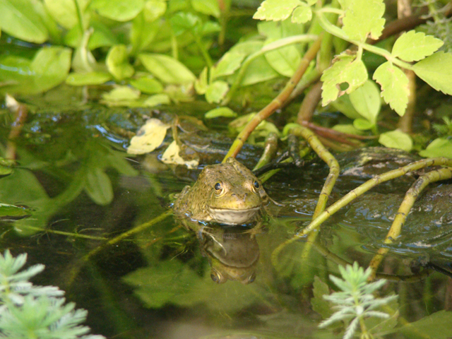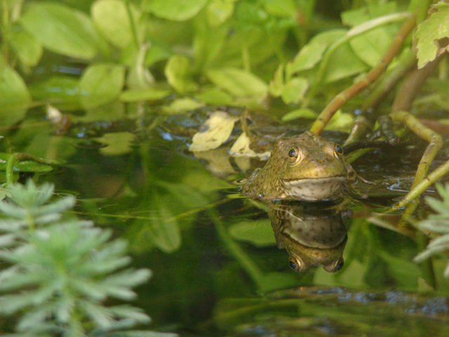 Our new bullfrog tadpoles are turning into cute little bullfrogs. These two little guys hang out on the driftwood every day.