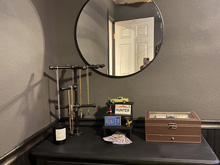 April 8, 2023This dresser was part of the nursery set we got from Target for Hunter's baby room! I lightly sanded it, cleaned it, and tried to paint it matte black. The first Krylon matte paint I used was terrible and dried with shiny spots all over. It may have been a little thicker on some spots because it was hard to get in the edges of the beadboard, so maybe that is why it was shiny. I repainted it with a flat black Rust-oleum paint and it came out really nice! Click any image for larger view. |