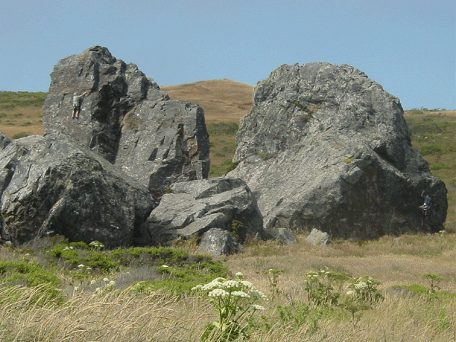 Boardwalk along the trail. Big rock on trail. Heidi hiking. Rock climbers. Climbing higher... And higher still... Dave at the peak of the trail... Sparkling coastline... Coastal views from trail. Coastline. Dave and Heidi Alysia and Ro