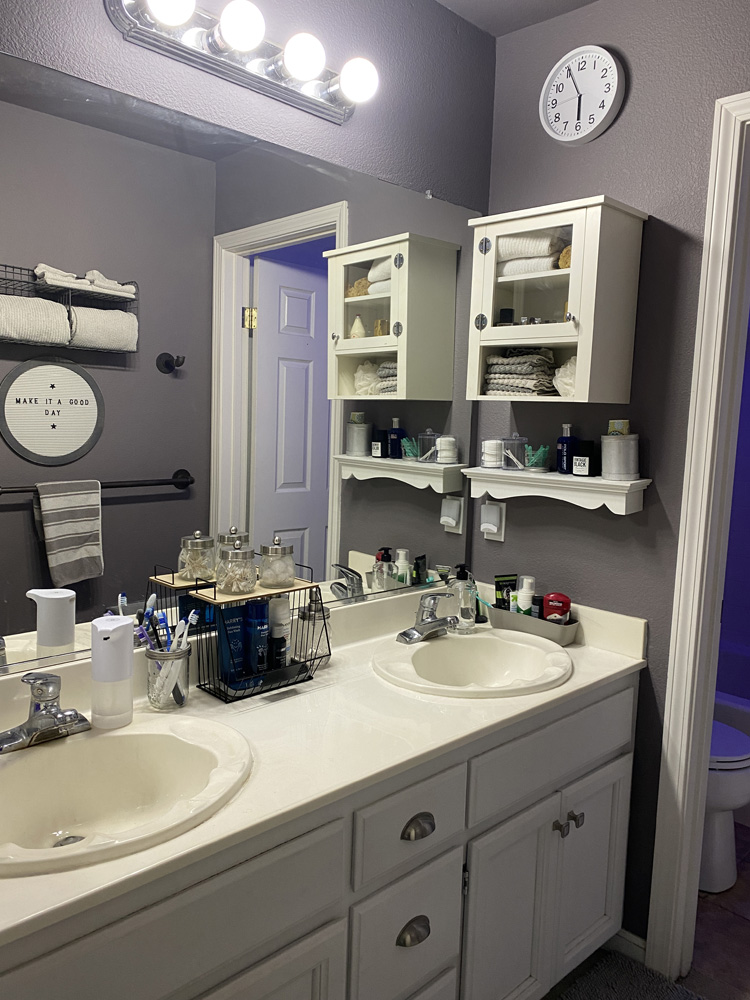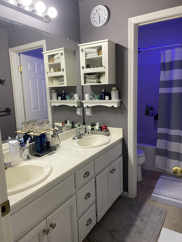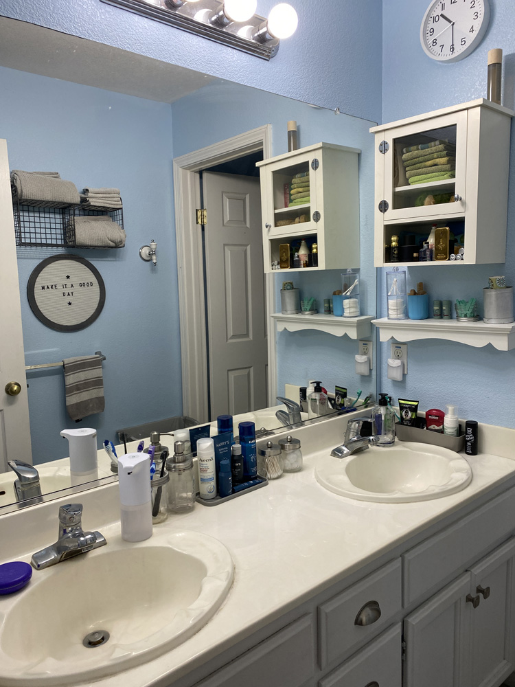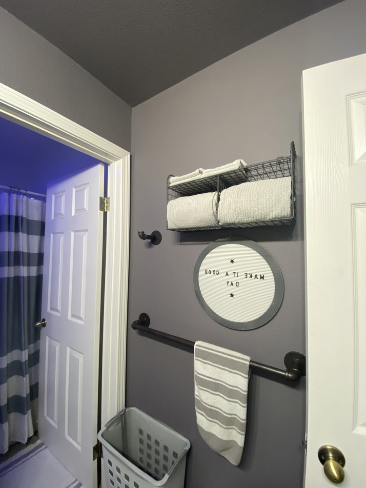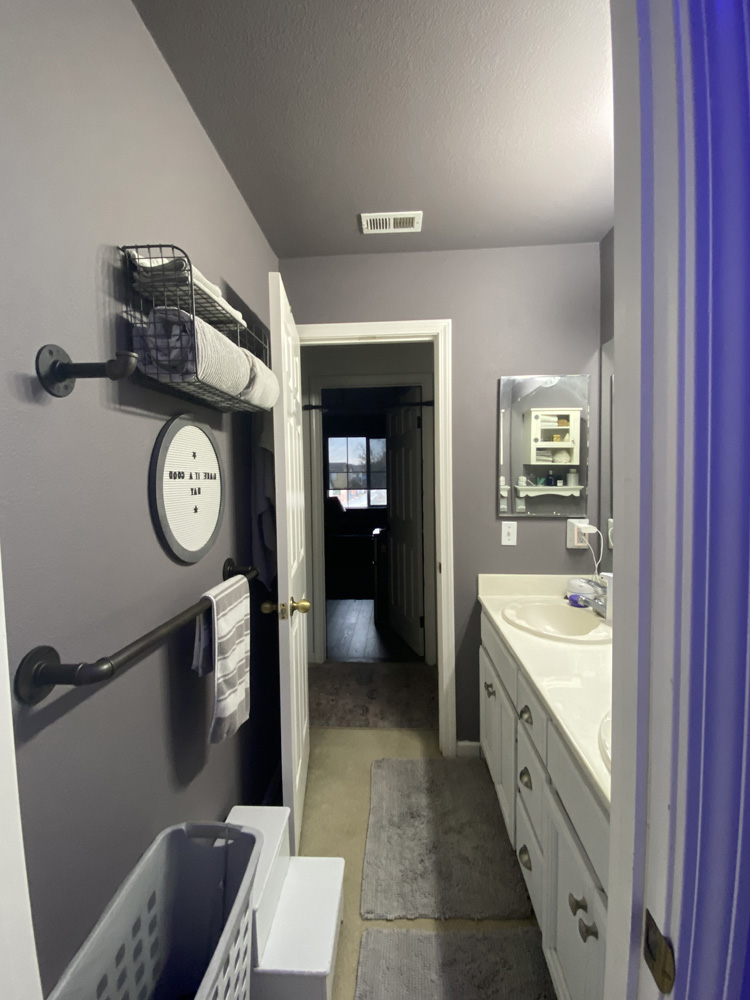 Painting the Boys' BathroomFebruary 2025We recently painted the toilet area in here and put in a new bathroom fan/light. We finally got around to finishing by painting the main part of the bathroom. The color is so much more "grown up" for the boys and it was way overdue. We will be adding a lot of new fixtures and doing the floor next month! We'll add new pics soon... Click any image for larger view.