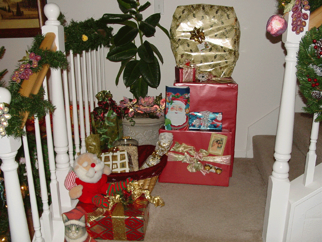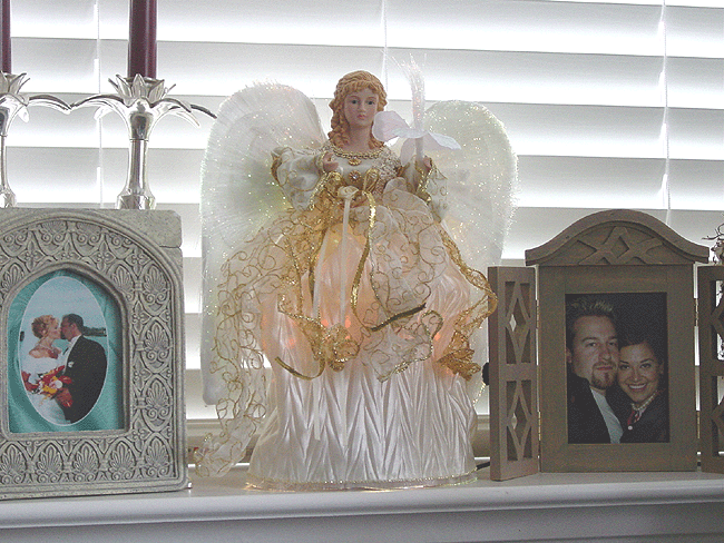 Flowers Heidi's work sent! Pretty pink poinsettia Dave got for Heidi. Tiny little ornaments. The presents are starting to pile up! Homemade Christmas cookies Heidi made for Dave to bring to work. More gingerbread cookies! Chocolate chunk an chocolate chip. More gingerbread and sugar cookies... Tiny gingerbread people and angels. Allie's Christmas presents! New angel from Heidi's mom. New Santa from Heidi's mom. Mistletoe heart Dave got for Heidi! Fiber optic angel from Heidi's mom.