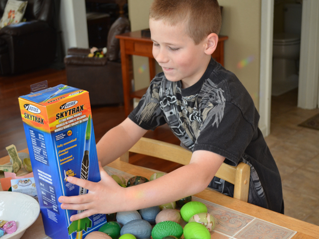 March 31, 2013It was drizzly and wet outside, so we hid 80 Easter eggs in the house! Click any image for larger view.