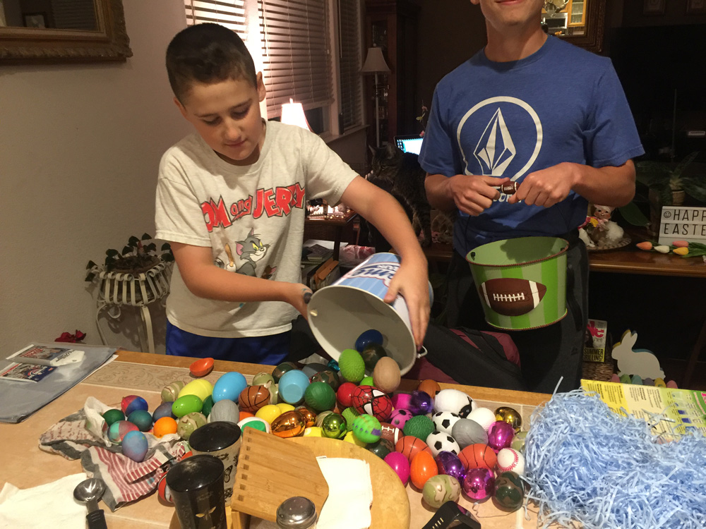 Since we were going to be gone on Easter, the boys colored eggs and did their Easter egg hunt very early on Easter Sunday -- around 1am! They had 100 eggs to find. They also got their Easter baskets a little early.