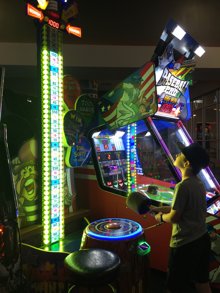 September 27, 2018Hunter went to a friend's bowling party at Epicenter, so we hung out in the Arcade with Ryder. Click any image for larger view.