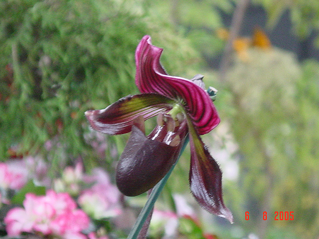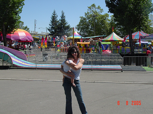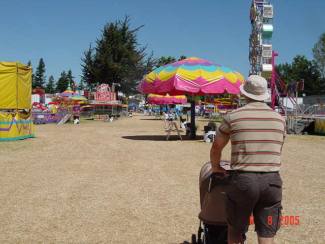 Hunter looking at more flowers. Pretty Orchid Waterfall Hunter Hunter Big turtle in the reptile exhibit. Dave shows Hunter the big Parrot. Goats. Dave and Hunter take a break. Dave and Hunter walk through the carnival rides. Saturday afternoon and it's not even crowded! Heidi and Hunter
