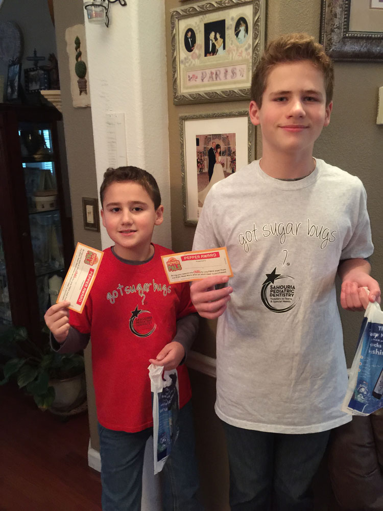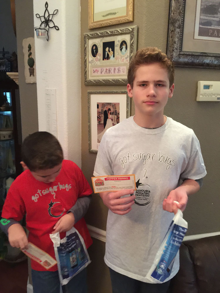 The boys scored free lunches from Chili's for great dental checkups!