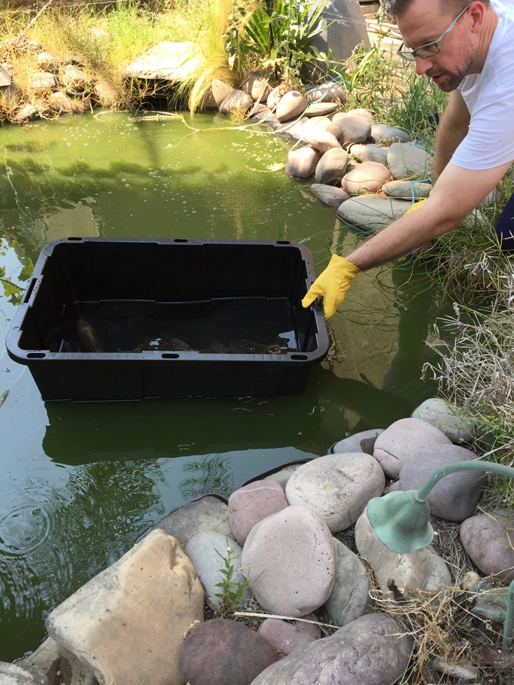 My mom has decided it's too much trouble to try to fight off the raccoons and birds looking for a meal in her pond. She removed the remaining koi and will drain it. Fortunately, we have room in our pond to give them a new home! The biggest, Hellboy, is having a wonderful time with all the new space!