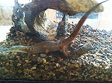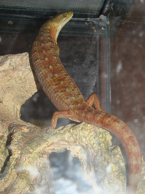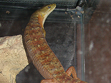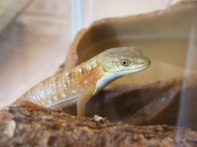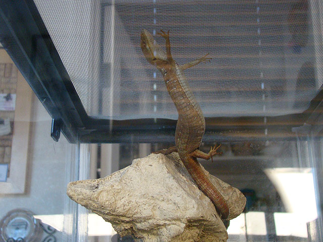 July 10, 2011Millie is a California Alligator Lizard. We found her in our back yard and she is over 8 inches long. February 24, 2017: Millie passed away after almost 7 years. She was well taken care of happy eating crickets and worms -- while watching us in the kitchen every day.