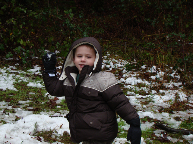 January 23, 2010We found enough snow today for Hunter to make some snowballs. Poor Ryder slept through it all. Click any image for larger view.