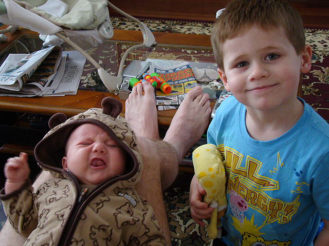 Ryder wearing his cute bear jacket from Natalie.