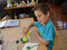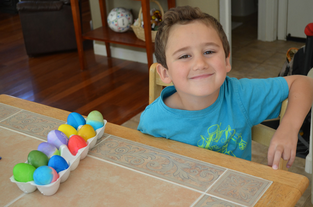 Ryder coloring Easter eggs. (Hunter helped too...)