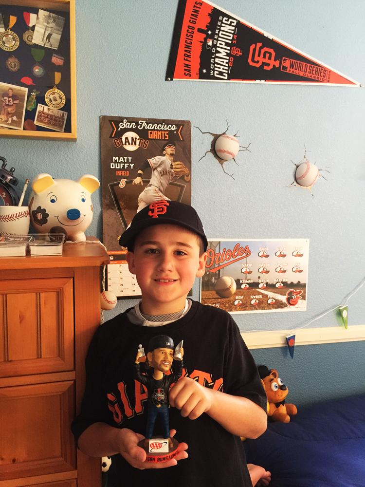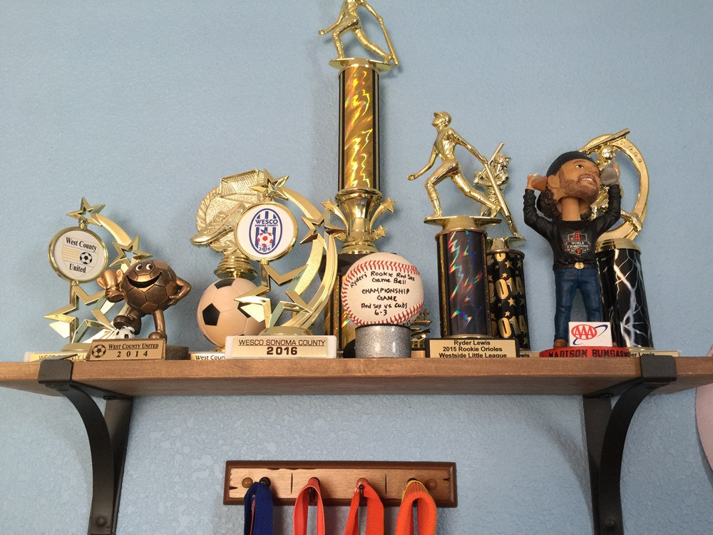 Ryder's team gives out bobble heads ins lieu of game balls, and Ryder earned one last week. He got to pick it out after today's game, and it thrilled to have it in his room with his trophies. He played great again today too!