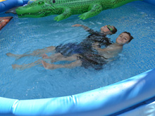 Ryder practicing his floats with Hunter.