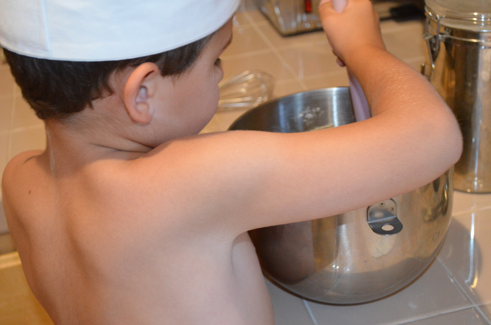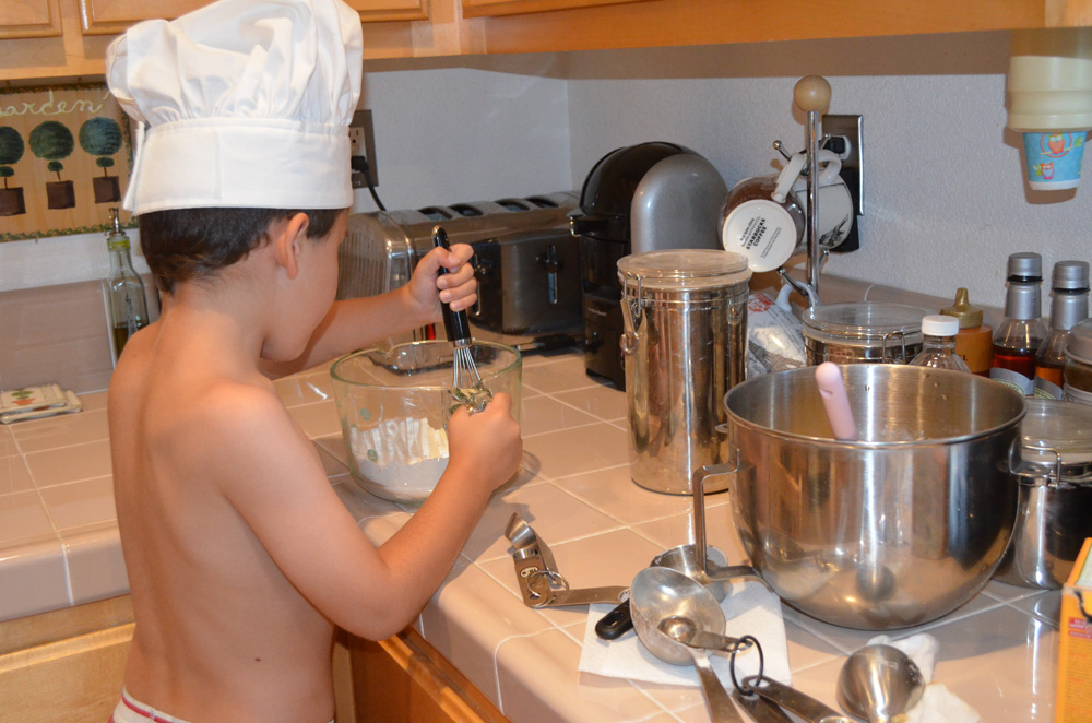 Ryder baking chocolate chip cookies.