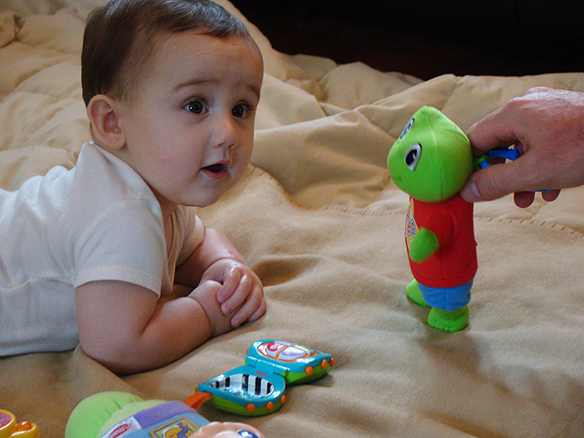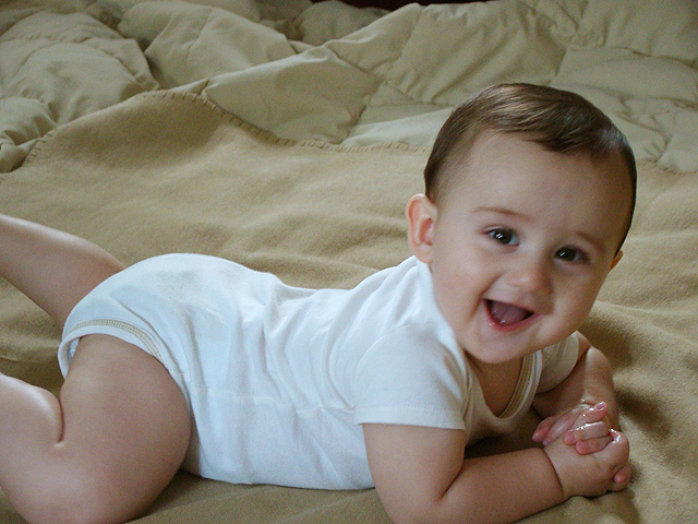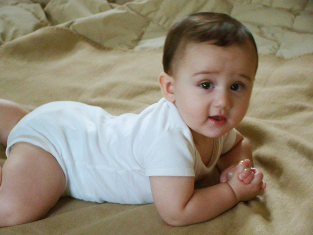 August 8, 2009Ryder just went in for his 6 month checkup. He weighed 21 lbs. 1.7oz., and was 27¾ inches long. He can get around quite a bit on the floor and will be crawling very soon! |