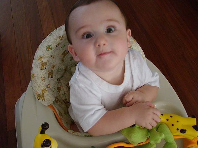 Ryder loves his new walker so he can move from room to room and see what's going on!