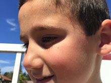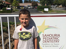 Ryder had new front teeth coming in behind the baby teeth. They teeth were so loose, they were protruding forward. He was too stubborn to wiggle them out, so the dentist had them out in one quick wiggle. He couldn't believe how easy it was!
