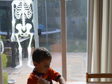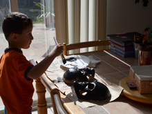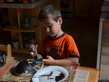 Ryder painting masks before Halloween.