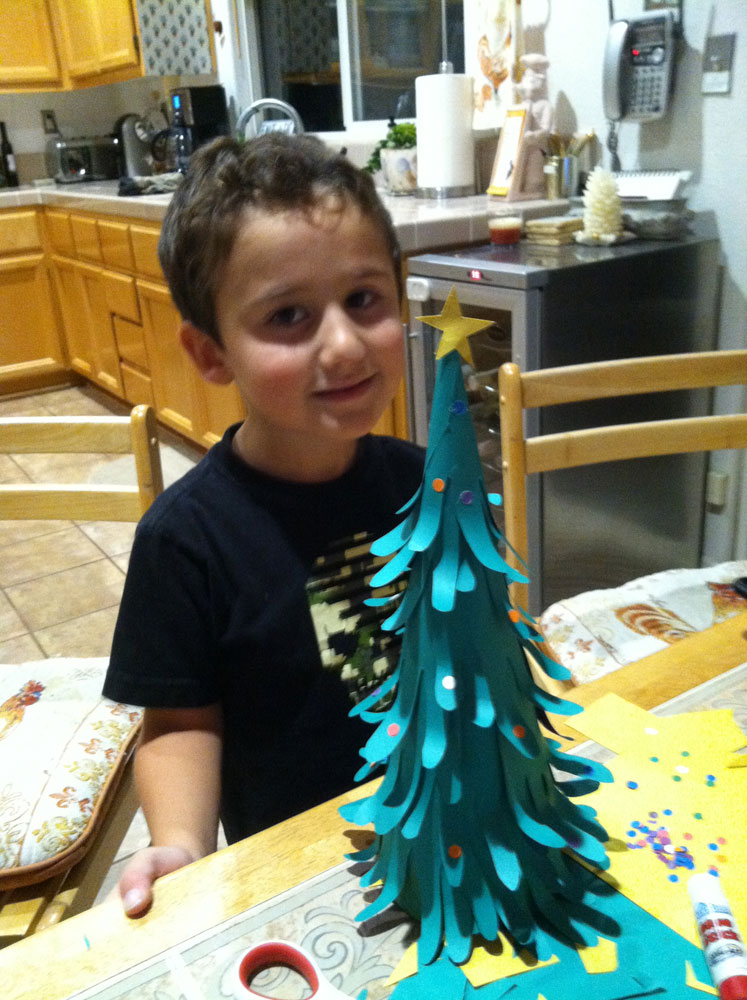 Ryder made this super cute Christmas tree made with his cutout handprints! He was very proud of it and did a lot of the work himself. (mom cut out the handprints)