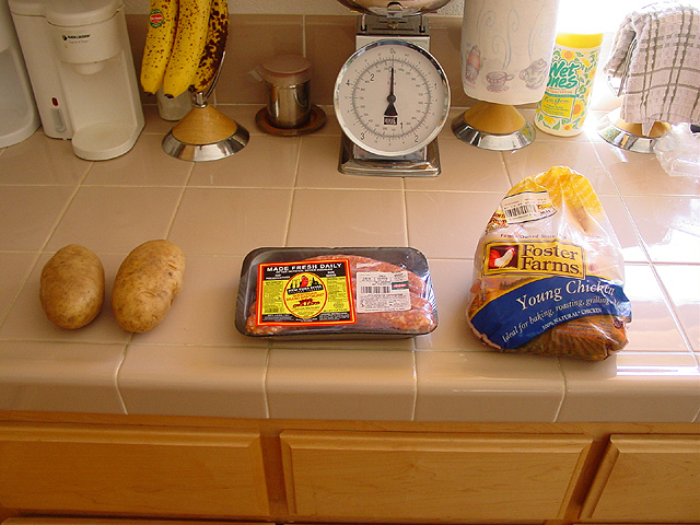 Chicken and smoked baked potatoes.