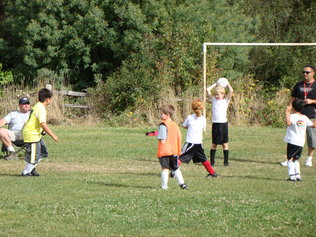 August 28, 2010Hunter's first scrimmage against another team. (Most of the kids in the white t-shirts are the other team.) Click any image for larger view.