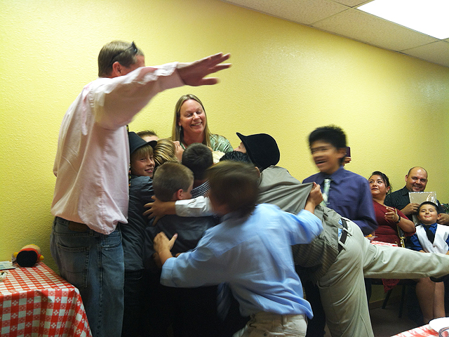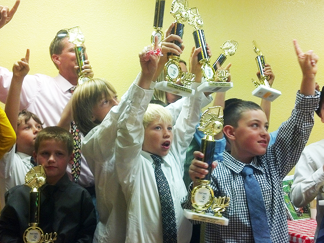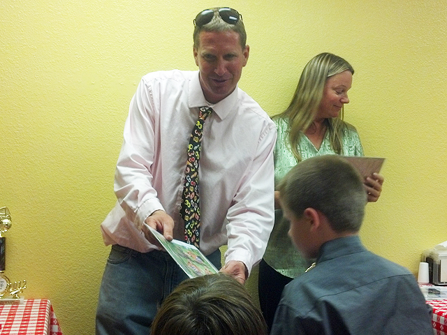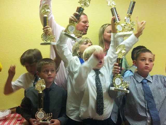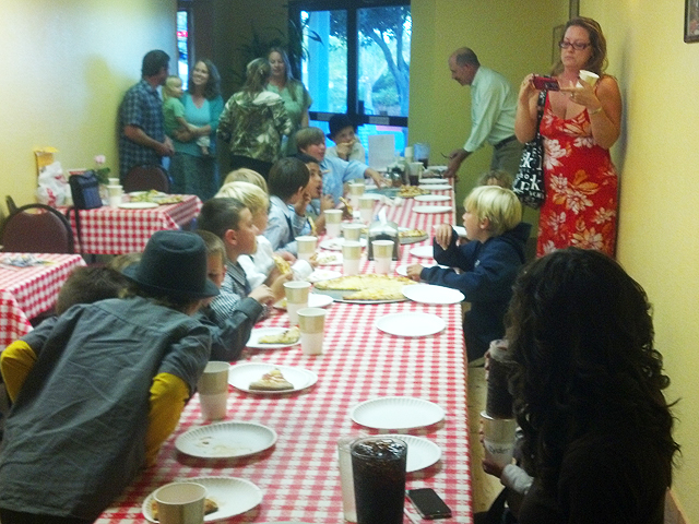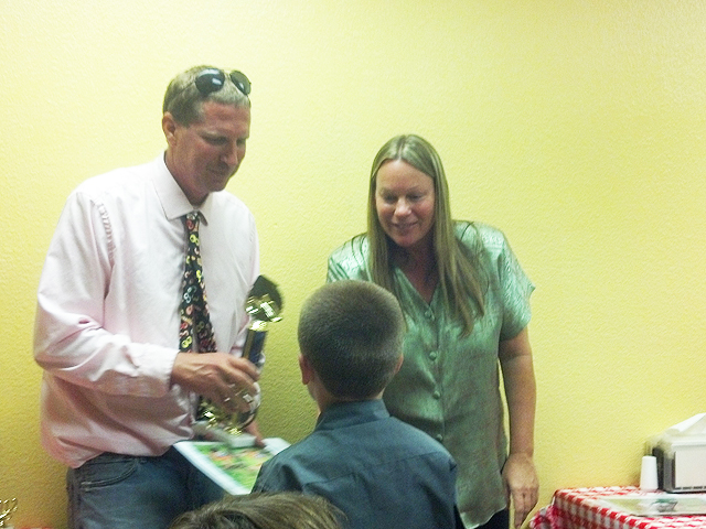 Hunter had his awards ceremony and pizza party tonight. The camera battery was dead, but we got some photos with our phones.