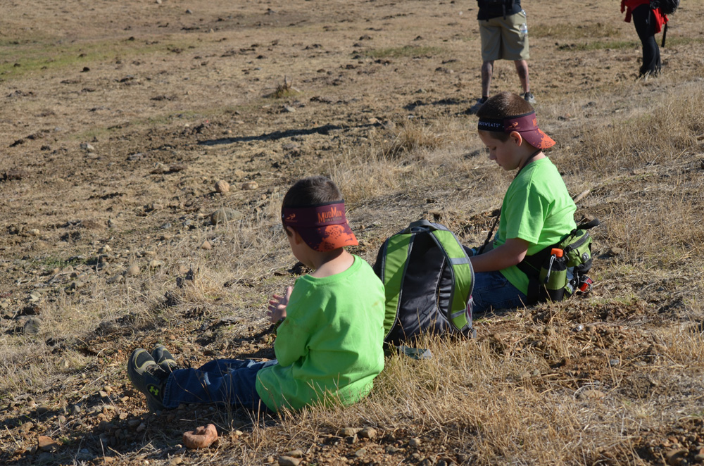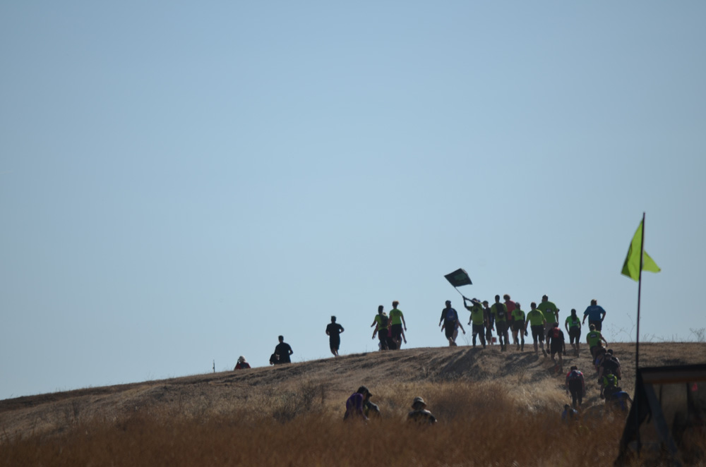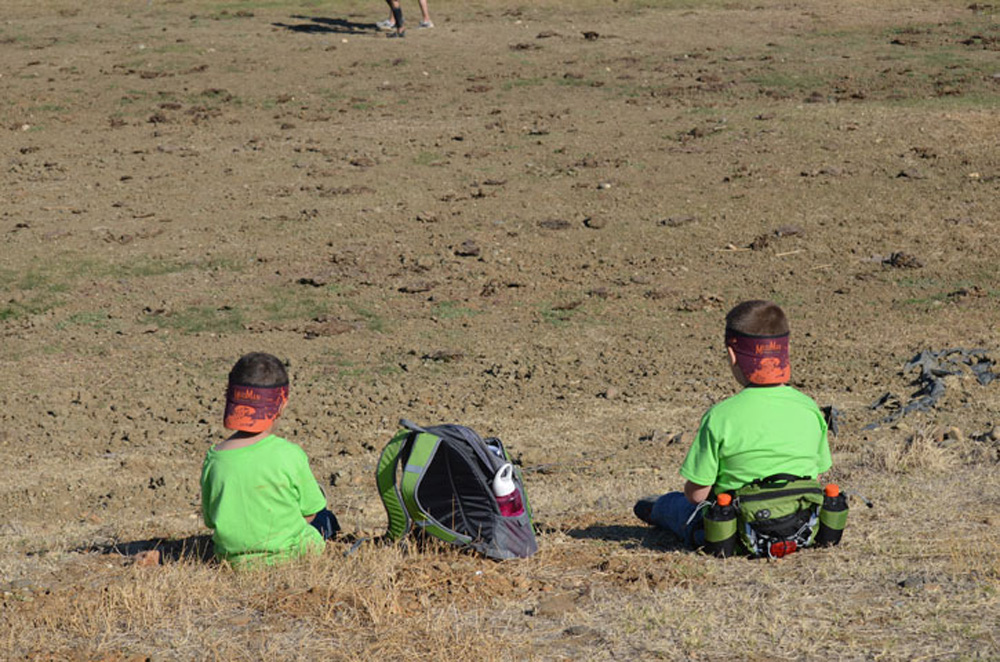Dave going over the first wall to get to the starting line. Dave waiting to start. The participants warming up before the start. Ready to start... Ready to start... He's off! Going through the Over and Under obstacle Going through the Over and Under obstacle Only about 14 miles and twenty-something obstacles to go... The boys watching for dad. The boys watching for dad. Dave