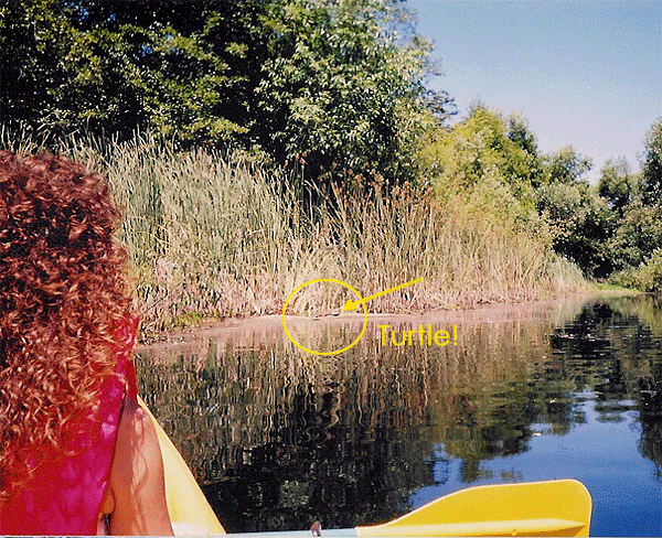 Duck Through the algae... Dave Heidi We got pretty close to this turtle, but we got a cheap camera for the kayak and it didn't zoom... Pretty trees in the lake. Lots of ducks. Duck Cove Grassy banks. Lake through the trees. View from the banks.