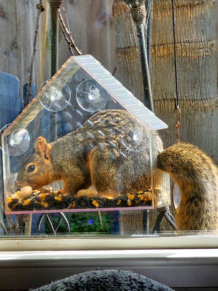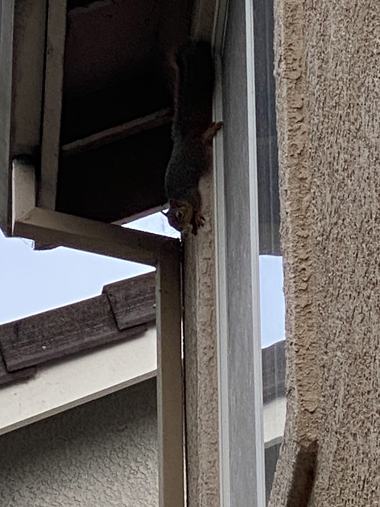 Squirrels, Spring 2024The squirrel family in has been living in our backyard palm tree for several years now. They love their squirrel bridge!