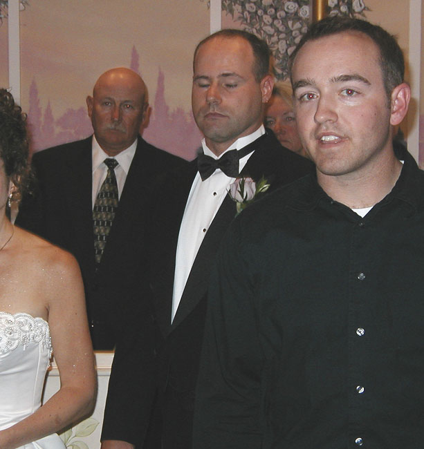 It's finally happening! Mark, sleepy Dave, and Scott. The dress... Erica Groom's wedding party. The wedding party. Ring A very special moment! Almost a married man! Whew...we did it! Ryan, Heidi, Dave We're married!