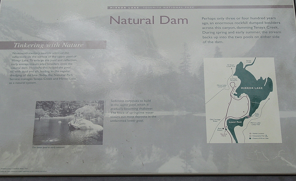 Heidi in a tree on the Mirror Lake trail. Dave in the tree... Mirror Laek Resources A Seasonal Lake Mirror Lake Dam Mirror Lake fish story... Mirror Lake Mirror Lake A rock jets out of Mirror Lake... A bear's den? Dave stepping out of the den... Heidi in a bear's den...