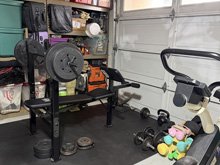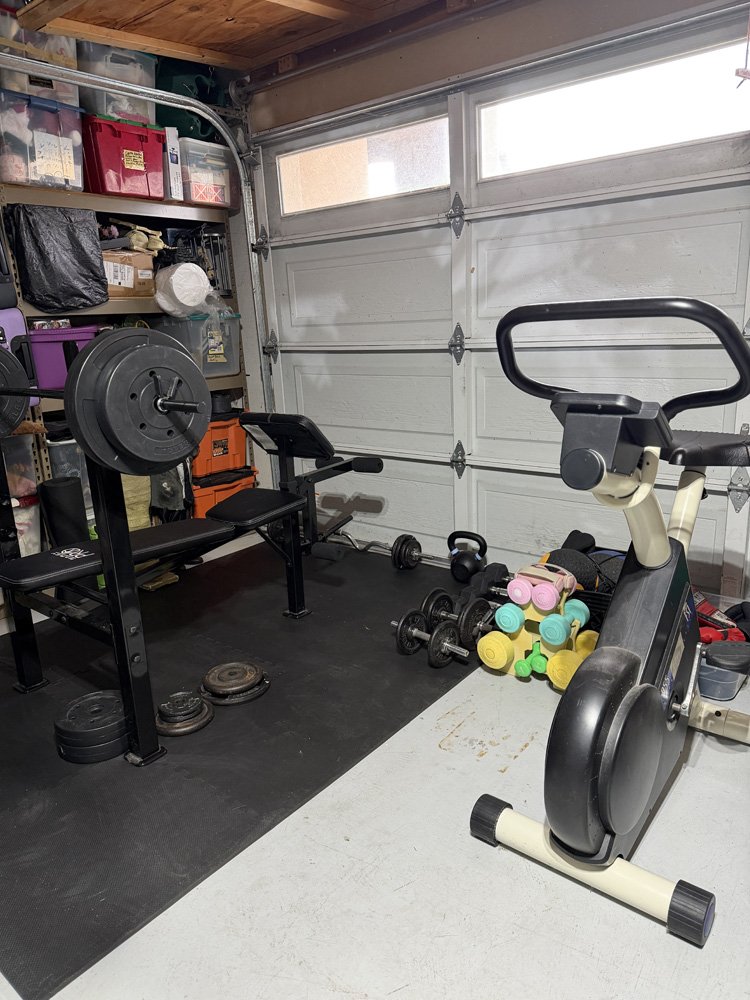 Updated - February 17, 2026: Since this post, the rug I put in the garage got pretty ragged after a few years! We picked up a pack of these great foam squares for below the Workout bench and they work great. We got them at Marshall's and one pack for 29.99 creates a 6x8 area! Click any image for larger view.