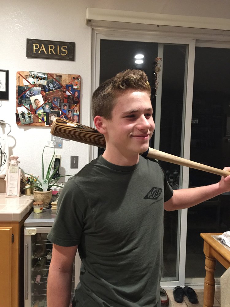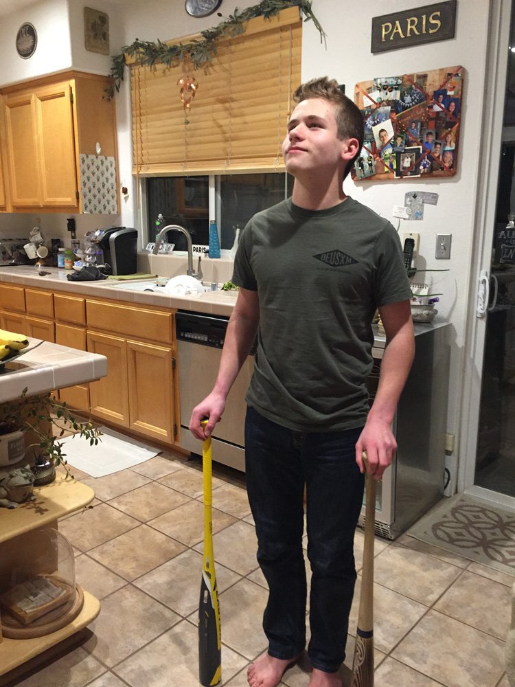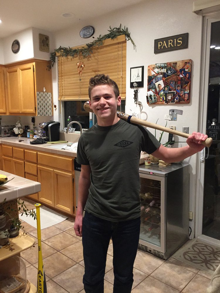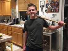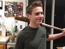 Hunter with his new baseball bats.