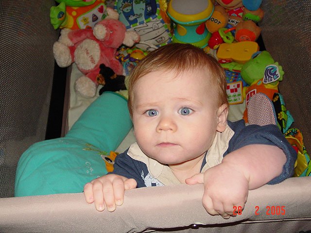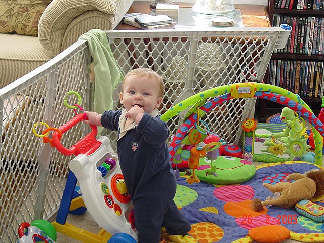Hunter standing. In the playpen. In the playpen. In the playpen.