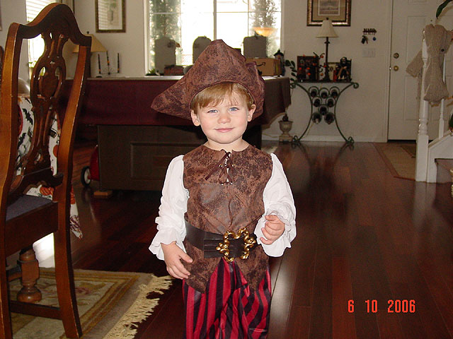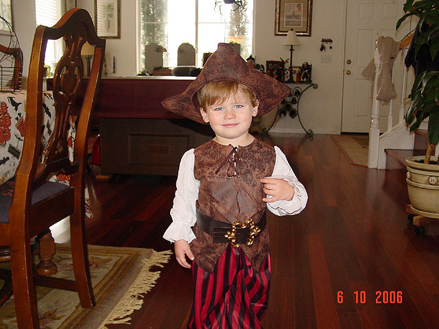 October 6, 2006Hunter tried on his pirate costume today. He has a bandana for his head and a sword to go with it. Click any image for larger view.