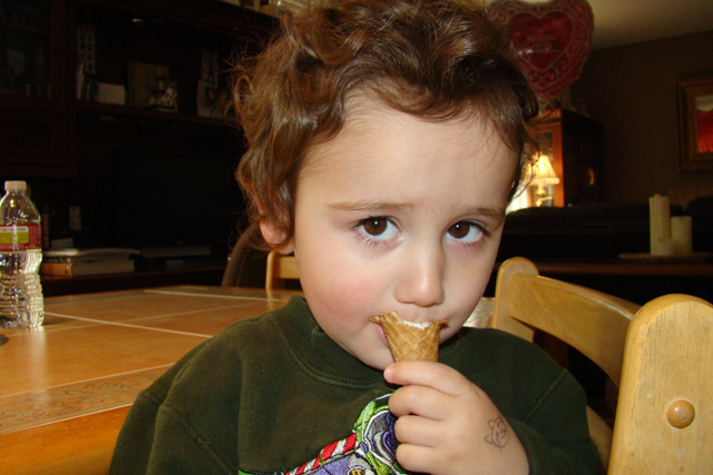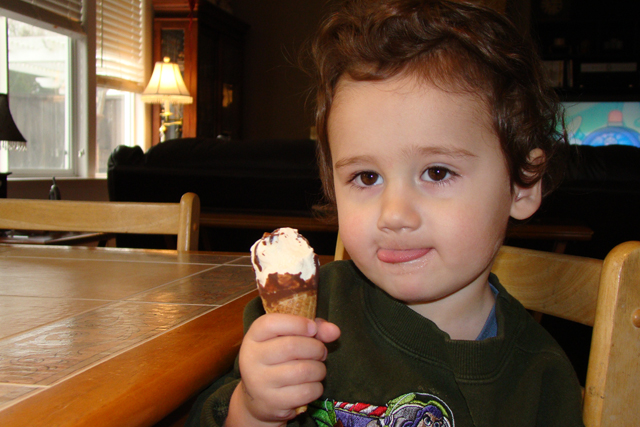 Ryder enjoying an ice cream cone.