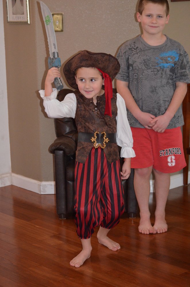 March 3, 2014Ryder wanted to dress like a pirate so I pulled out Hunter's old costume. It was from when Hunter was around 3, so it barely went on Ryder! Click any image for larger view.