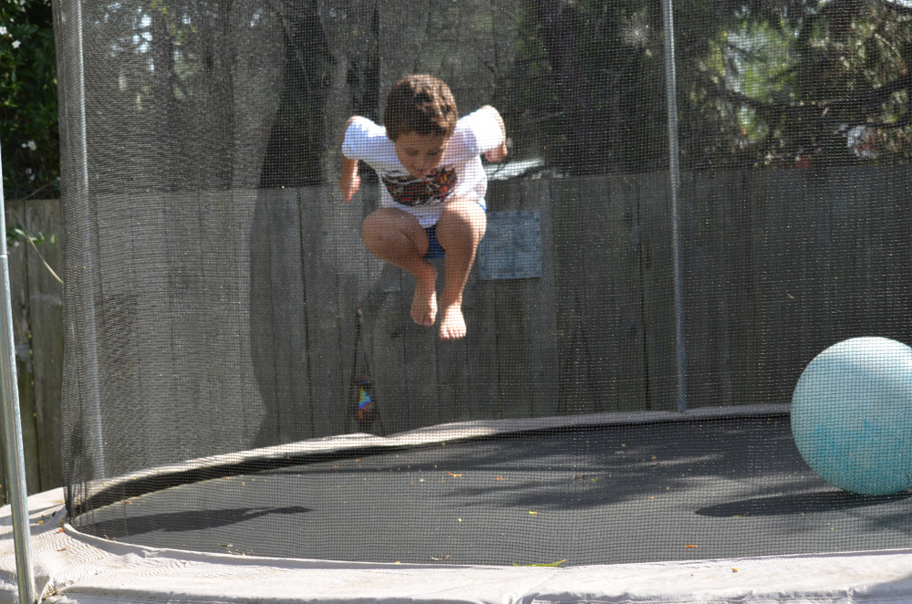 Who says you can't jump in undies if you're in your back yard?