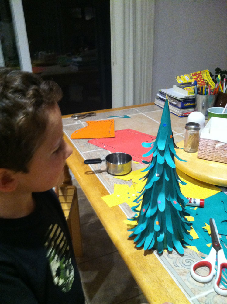 Ryder made this super cute Christmas tree made with his cutout handprints! He was very proud of it and did a lot of the work himself. (mom cut out the handprints)