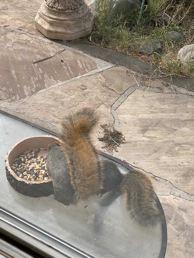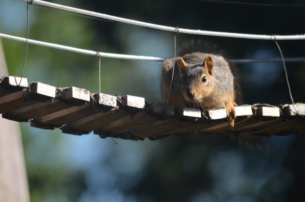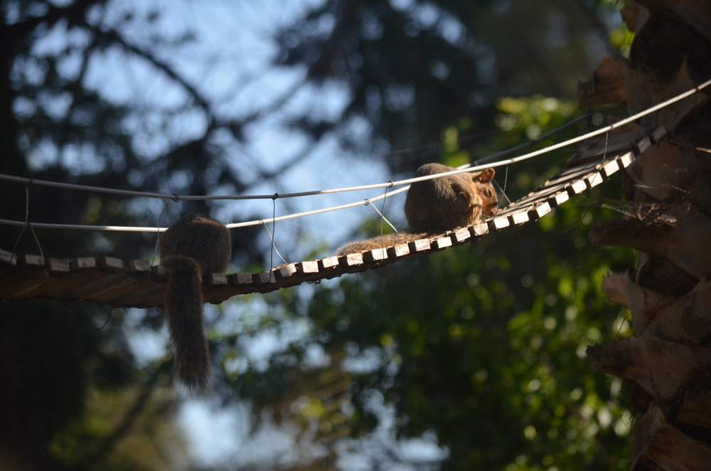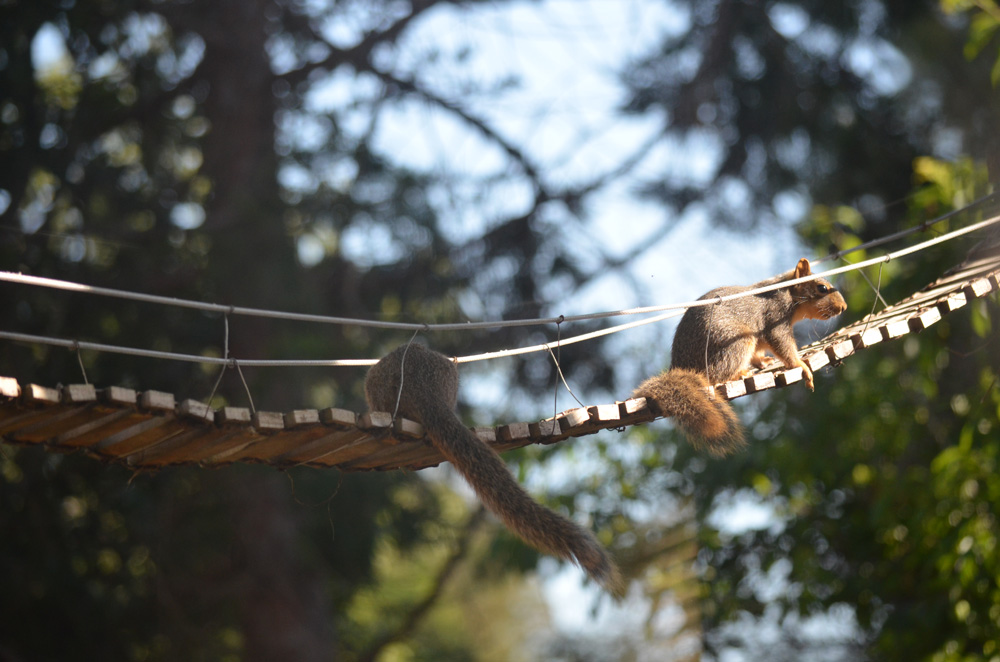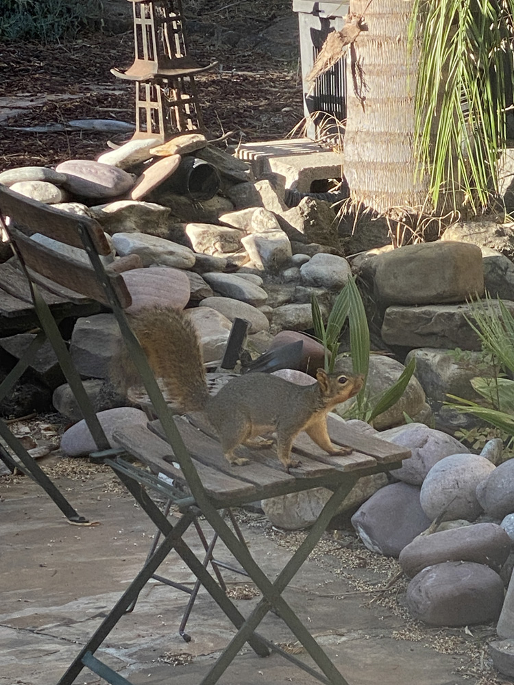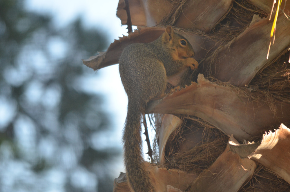 Squirrels, Spring 2024The squirrel family in has been living in our backyard palm tree for several years now. They love their squirrel bridge!