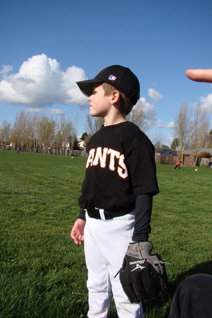 April 4, 2012Hunter had his first game today against the A's. It was sunny -- but freezing and windy out! Click any image for larger view.