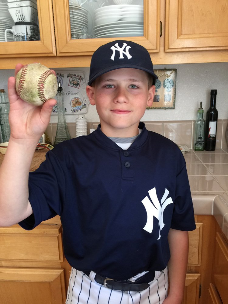 May 2, 2015Another win for the Yankees! They won the A's by 2 points, and Hunter got the game ball for making a great play! Click any image for larger view.