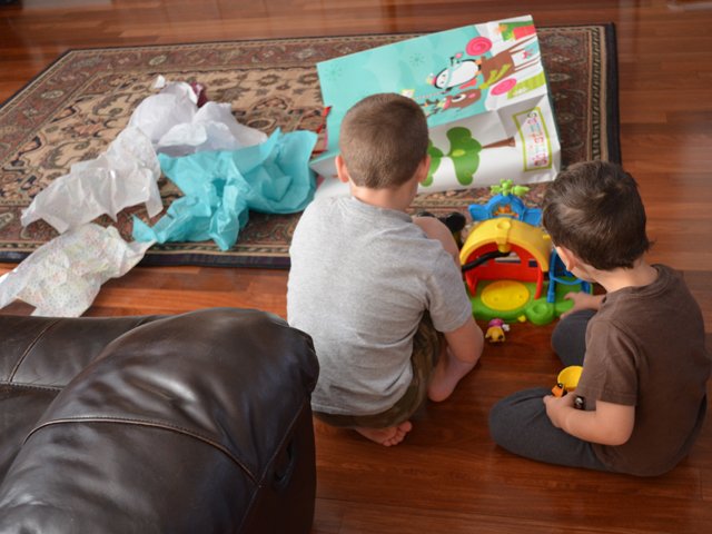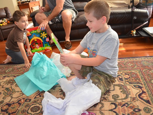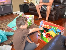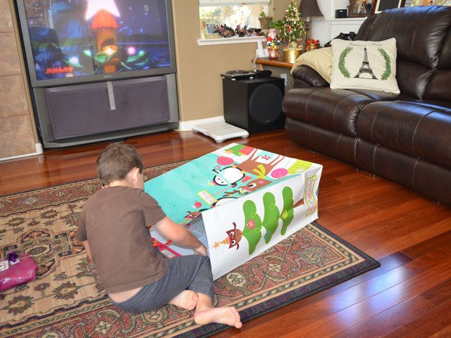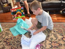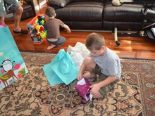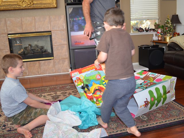 The boys each picked a gift to open on Christmas Eve. Ryder loved his Mickey Mouse Clubhouse Farm from Tanya, and Hunter was excited to play his new game from grandma!