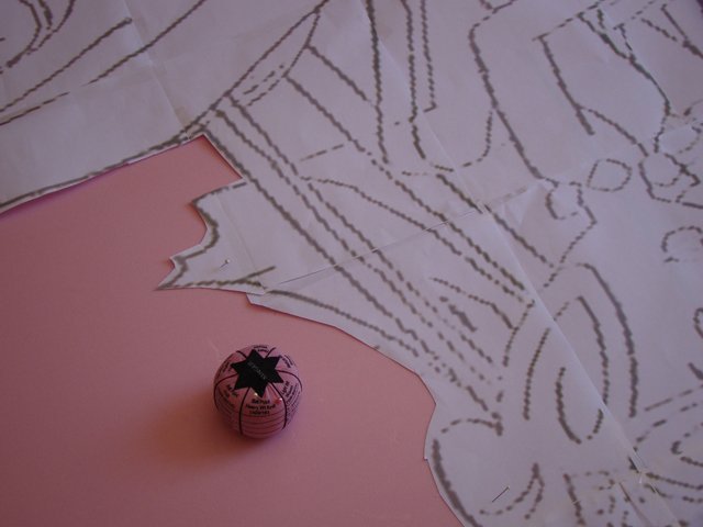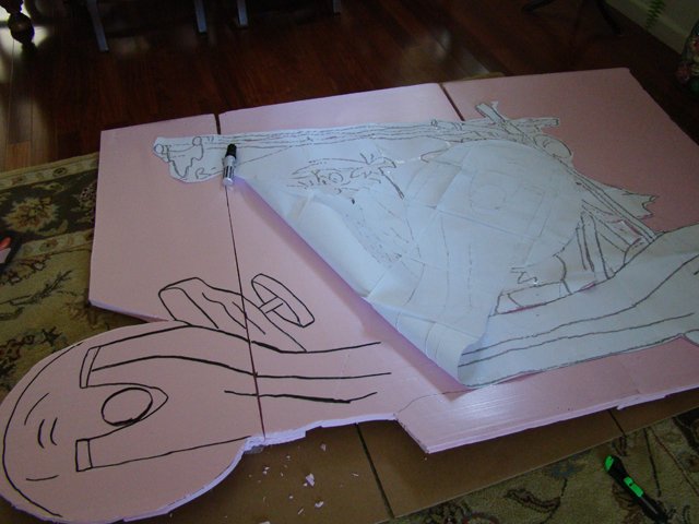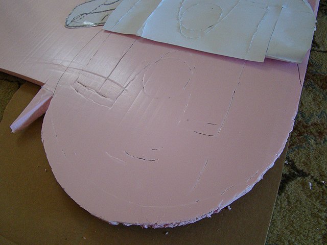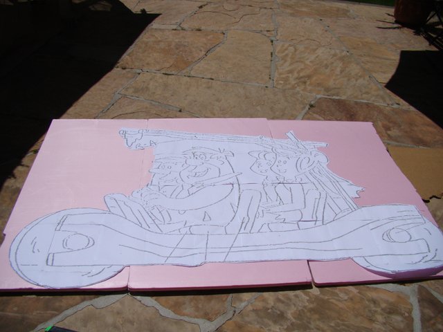 Use a ballpoint pen to go over all the lines in the template. My template included Fred & Wilma, so of course I left them out. I also made my car a 1-seater. The pen will cut through the paper a little, but it's OK. It will leave a nice dent in the foam. Outline the entire template with the pen.