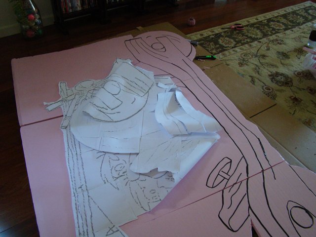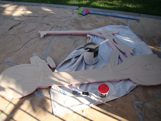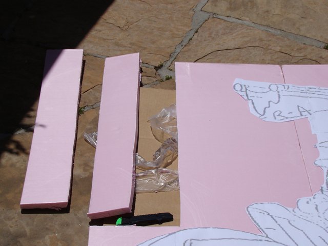 Heidi is working on a Flintstone Car Photo prop for a friend's party. It was intended to be built with cardboard, but that turned out to be just too flimsy. The car had to be large enough for the kids to sit behind and look like they were the right proportion. Insulation panels were used instead, and it's almost done. Looks pretty cute so far!