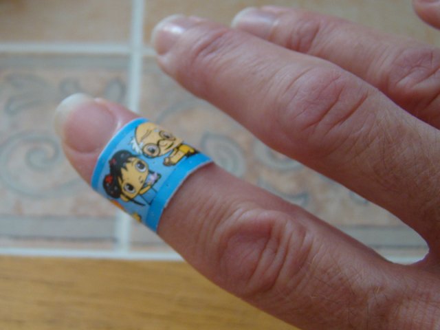I used a neutral color Latex paint to cover it first, so the colors would go on well. The impressions from the lines and the marker still were faintly visible, so it is easy to put the final thick marker lines on again after the paint is done. This will give it that cartoon look.